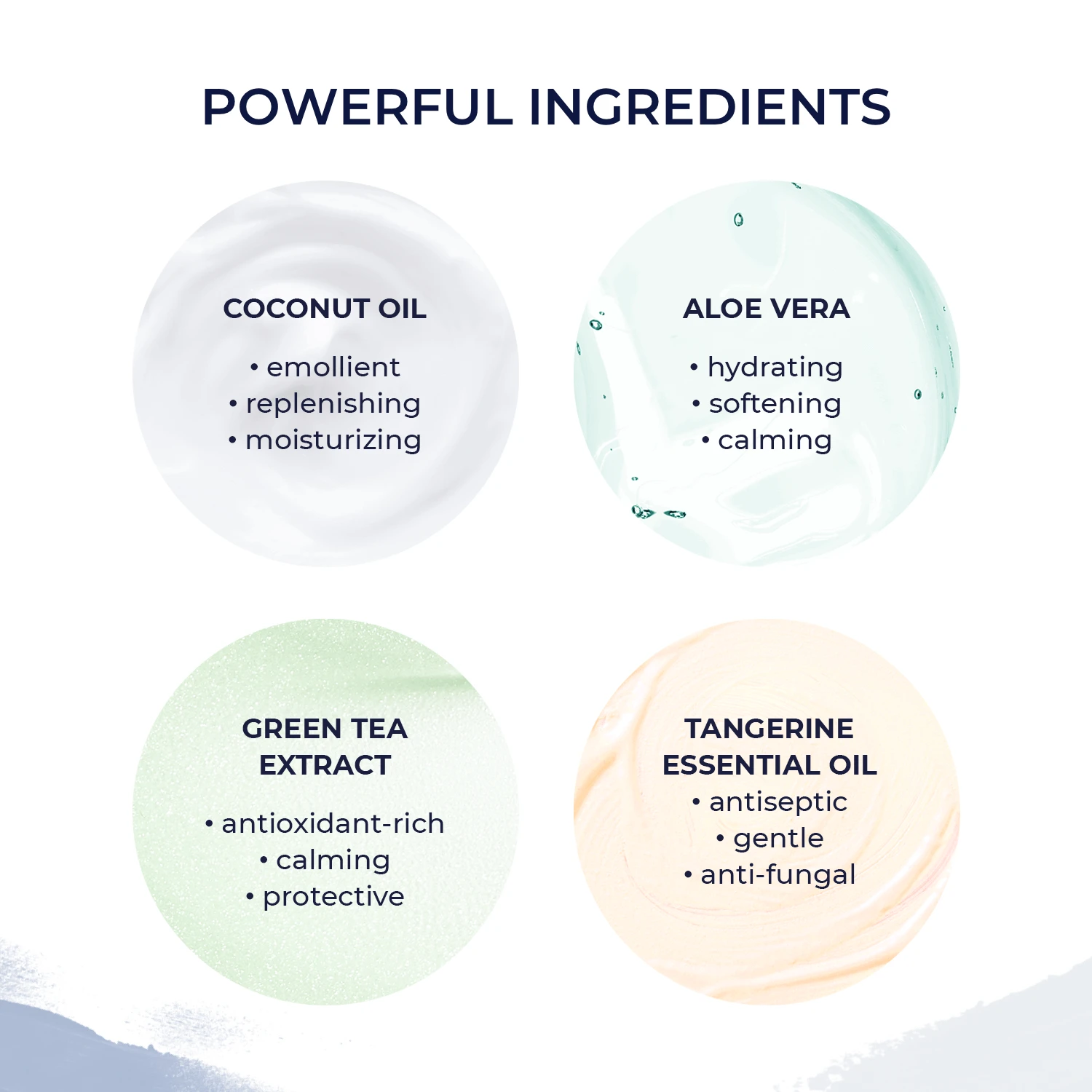 Distilled Water, Safflower Oil, Capric/Caprylic Triglyceride (Coconut Oil), Vegetable Glycerin, Aloe Barbadensis Leaf, Soapwort Extract, Green Tea Extract, Chamomile Extract, Lavender Extract, Marshmallow Root Extract, Licorice Root Extract, Lemon Balm Extracts, Oat Extract, Tangerine Essential Oil, Emulsifying Wax NF, Leuconostoc/ Radish Root Ferment Filtrate, Xanthan Gum, Panthenol (Vitamin B5) , Allantoin