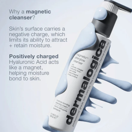 It is time to expect more from your cleanser. Magnetic[+] AfterGlow Cleanser is a revolutionary cleanser that acts like a magnet to help skin retain moisture and leaves skin feeling refreshed, hydrated, and prepped for the next steps in your skin care routine. This moisture-bonding cream cleanser, powered by Cellular HydraBond Technology with positively-charged Hyaluronic Acid, helps retain hydration for a glowing skin barrier.
