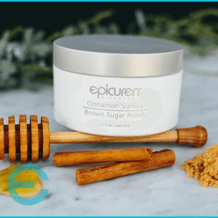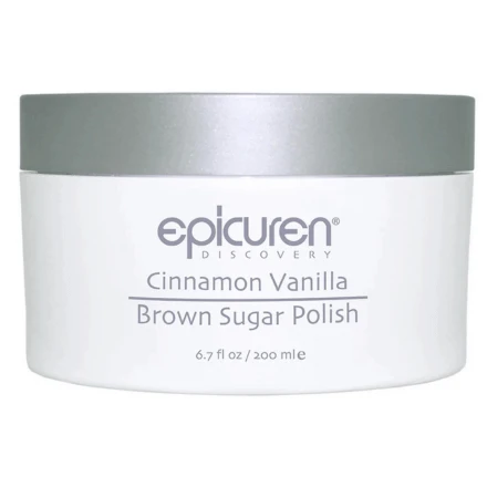 Indulge your senses with Epicuren Cinnamon Vanilla Brown Sugar Body Polish, a luxurious scrub combining natural brown sugar and honey for excellent humectant properties. This aromatic blend of vanilla and cinnamon gently exfoliates, leaving your skin soft, smooth, and radiant.