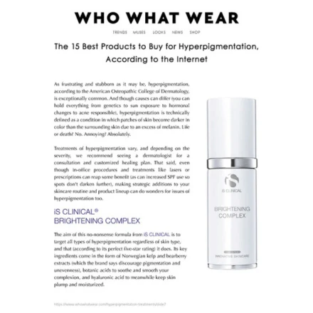 Illuminate your skin with iS Clinical Brightening Complex, a powerful yet gentle formula designed to brighten and even skin tone. This advanced treatment combines proprietary brightening ingredients and botanicals to target all five mechanisms that contribute to uneven skin tone, delivering safe and effective results.