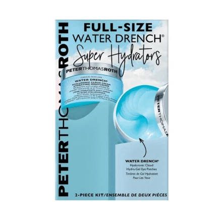 Discover the Peter Thomas Roth Full-Size Water Drench Super Hydrators—an incredible kit packed with full-size favorites that will leave your skin deeply hydrated and nourished. Featuring the bestselling Water Drench® Hyaluronic Cloud Cream Hydrating Moisturizer and the Water Drench® Hyaluronic Cloud Hydra-Gel Eye Patches, this set is a must-have for your skincare routine.